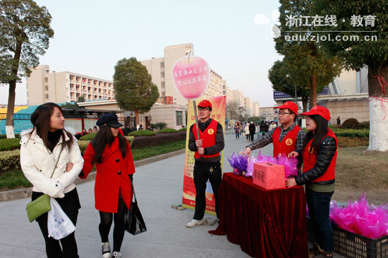 原来,党校学员身穿志愿者服装,在销售点旁边摆放着“为贫困山区小学爱心义卖苹果”的宣传海报,为了能让更多人加入到爱心行列中,党校学员还边卖边喊着“买苹果,献爱心”、“好人一生平安”、“为贫困山区小学义卖”等宣传广告,引得过往师生纷纷驻足购买爱心苹果。
