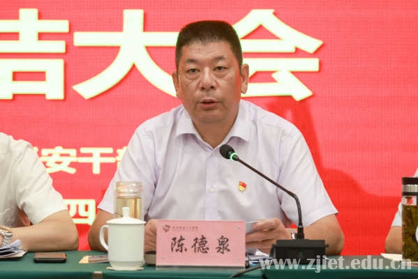在总结大会上,校长陈德泉作研讨总结,他表示,此次暑期读书会是近几年来主题鲜明、务实有效、启发深刻的一次党性教育。他强调,面对新一轮职业教育大发展的历史机遇,面对学校高质量发展的现实需要,全体中层干部要进一步提高政治站位,讲政治、讲大局,不断加强政治理论学习;要进一步聚焦干事创业的核心能力,勇于创新,善作善成;要进一步提振事业发展的信心,锚定目标,焕发斗志。紧密围绕创建高水平职业大学的愿景,看清新态势、瞄准新目标、建牢新构架,推动学校迈向更高层次发展。
